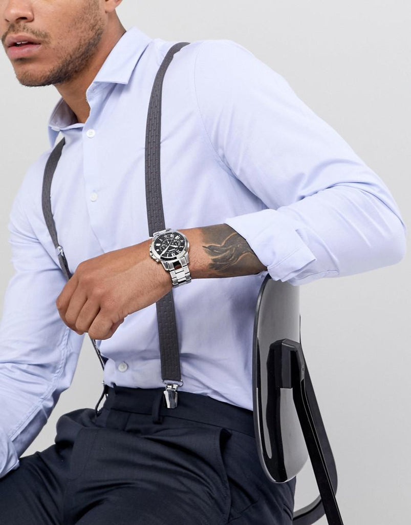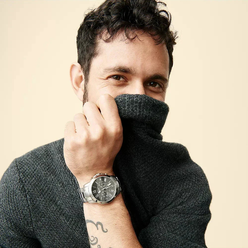 Fossil Grant Chronograph Black Dial Silver Steel Strap Watch for Men - FS4736