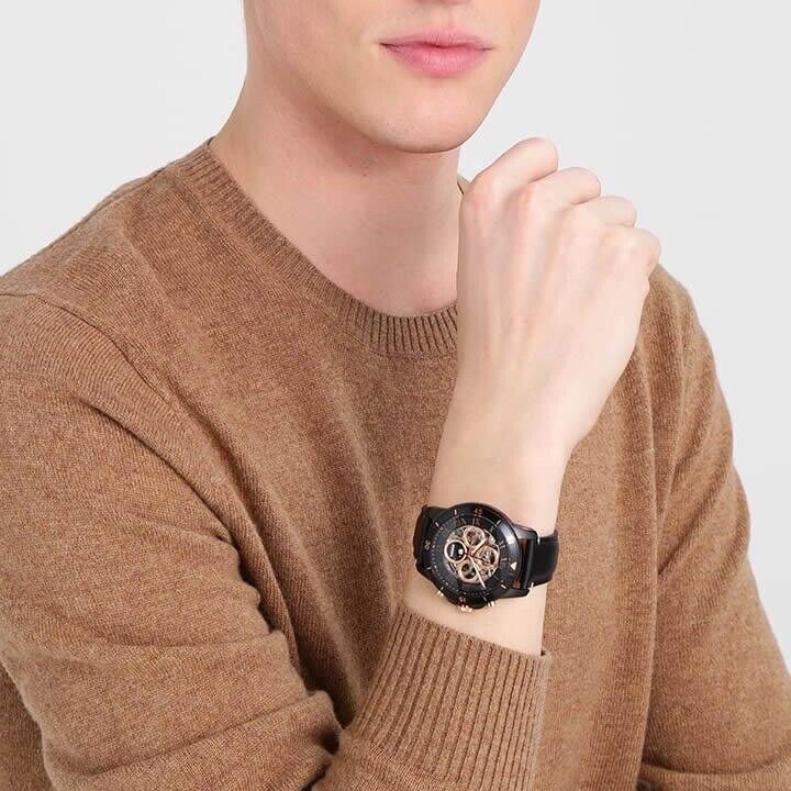 Fossil Grant Sport Automatic Skeleton Black Dial Black Leather Strap Watch for Men - ME3138