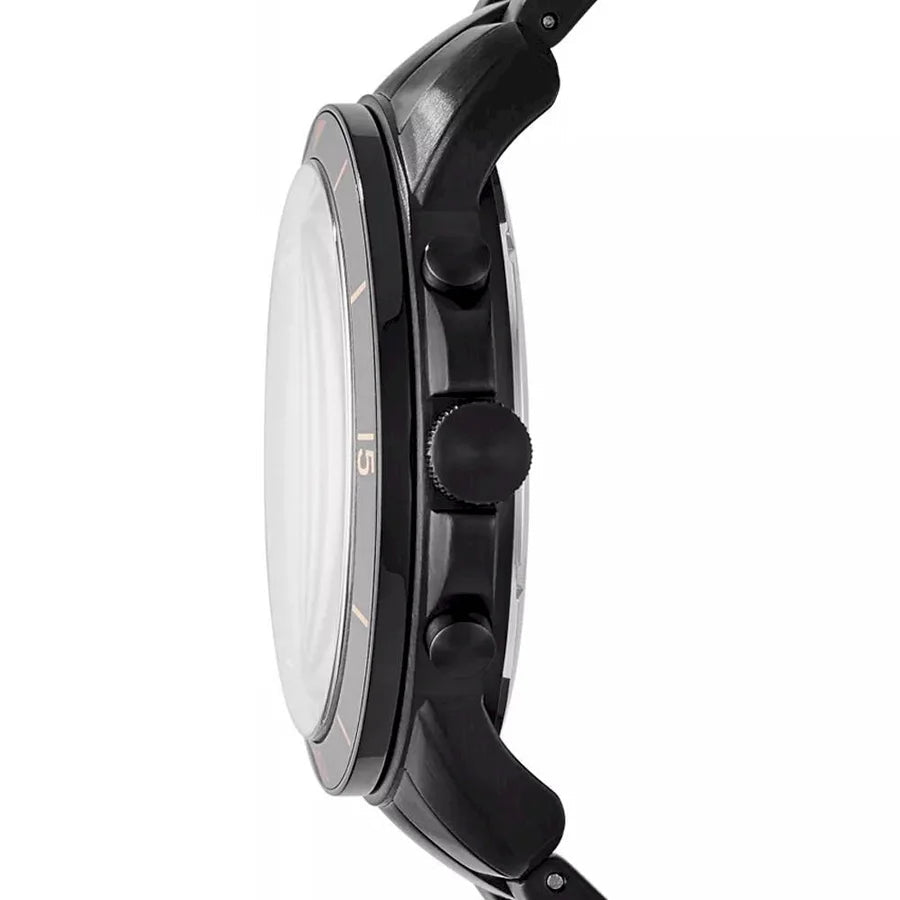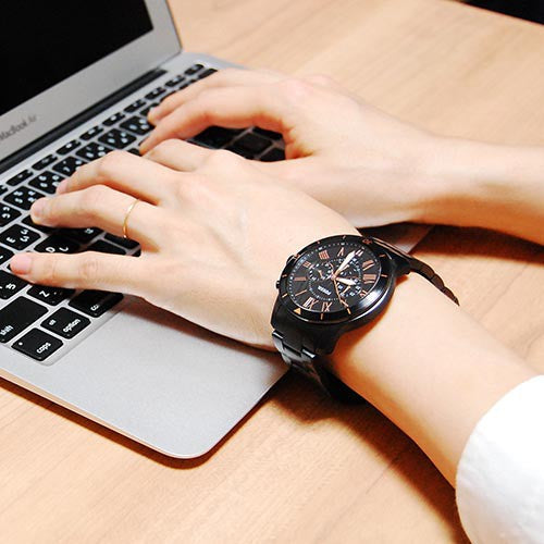 Fossil FS-5374 Metal Band Men Watch. The case is made out of black stainless steel with a black bezel, which stands for the high quality of the item, it has a black color dial. This model has got 50 meters of water resistance. it can be worn in scenarios where it is likely to be splashed but not immersed in water and will be fine in rain. The watch is shipped with an original box and a guarantee from the manufacturer.