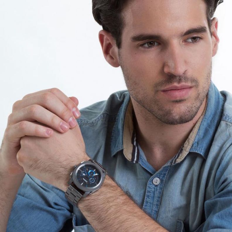 Fossil Machine Chronograph Brown Dial Grey Steel Strap Watch for Men - FS4931