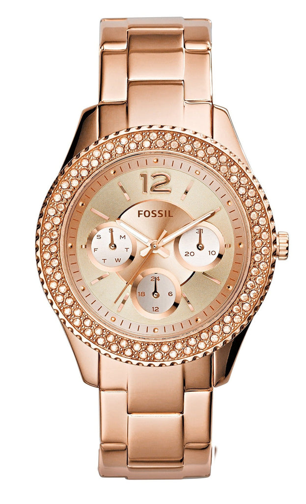 Fossil Stella Rose Gold Dial Rose Gold Steel Strap Watch for Women - ES3590