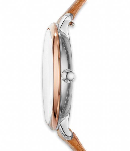 Fossil Jacqueline Three Hand Date Luggage Blue Dial Brown Leather Strap Watch for Women - ES4274