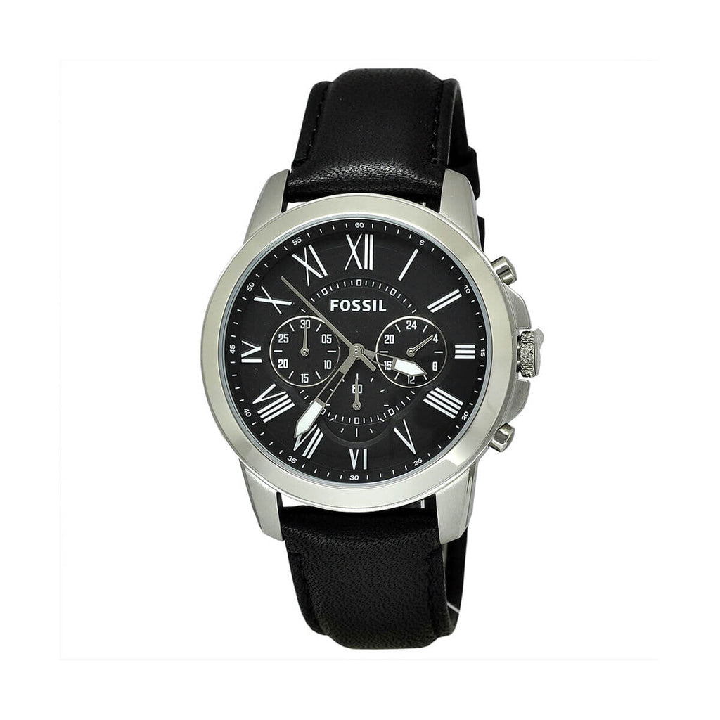 Fossil Grant Chronograph Black Dial Black Leather Strap Watch for Men - FS4812