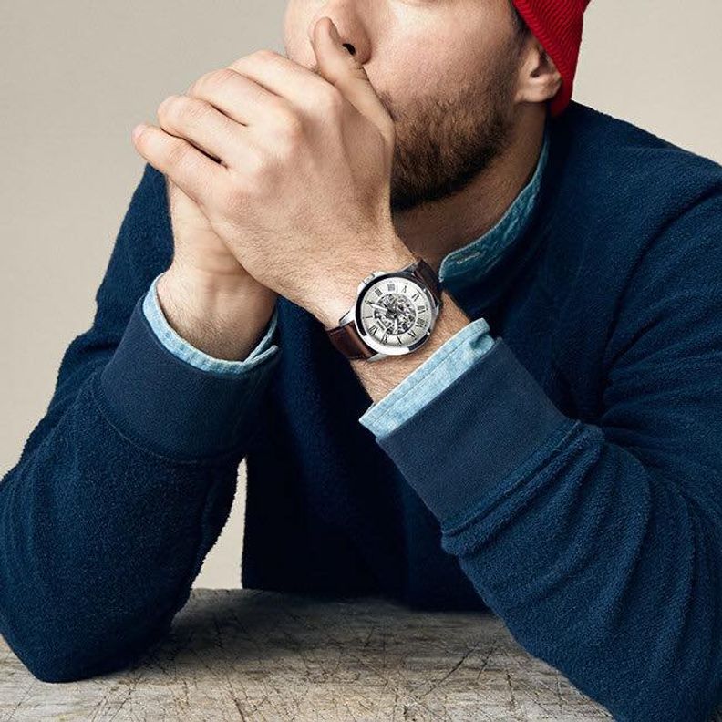Fossil Grant Automatic Skeleton Black Dial Brown Leather Strap Watch for Men - ME3095