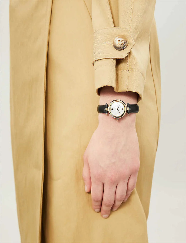 Gucci Diamantissima Mother of Pearl Dial Black Leather Strap Watch For Women - YA141505