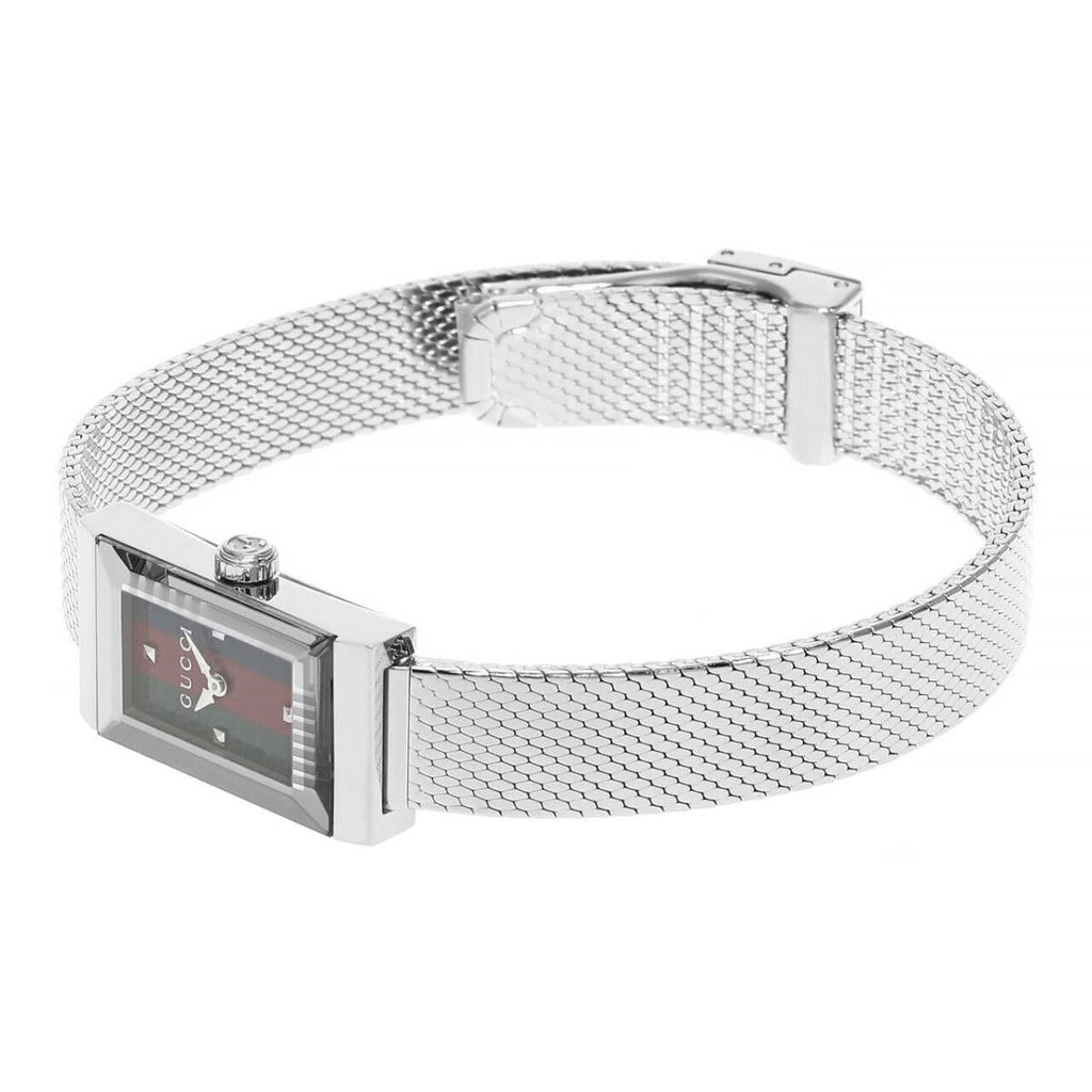 Gucci G Frame Quartz Diamonds Green & Red Mother of Pearl Dial Silver Mesh Bracelet Watch For Women - YA147510
