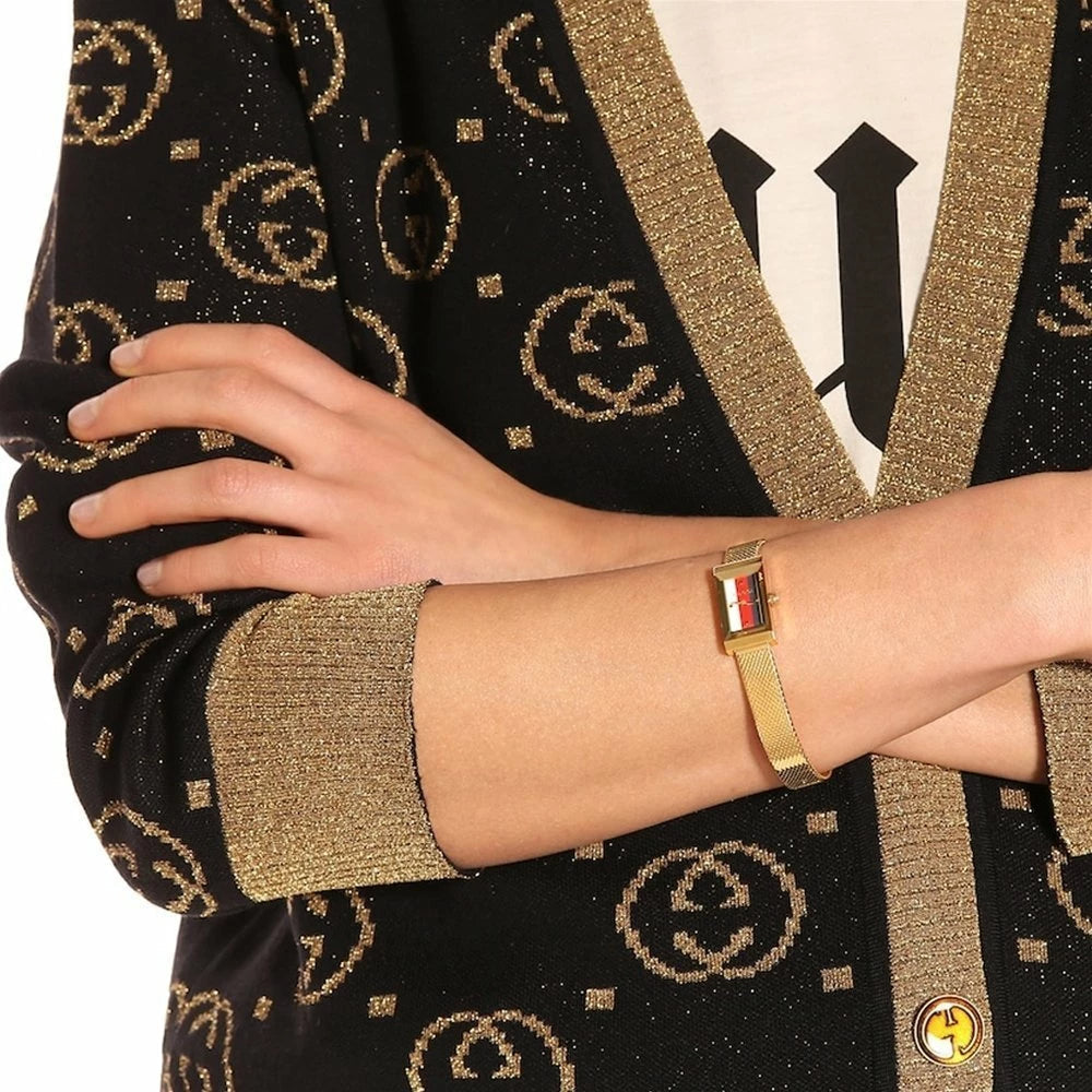 Gucci G Frame Quartz Diamonds White Red Blue Dial Gold Mesh Bracelet Watch For Women - YA147511