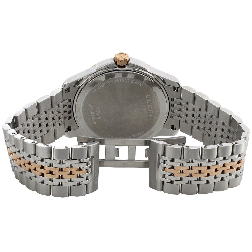 Gucci G-Timeless YA126410 is a functional and handsome Gents watch . Case material is Two-tone steel/gold plate while the dial colour is Black. The features of the watch include (among others) a date function. In regards to the water resistance, the watch has got a resistancy up to 50 meters.