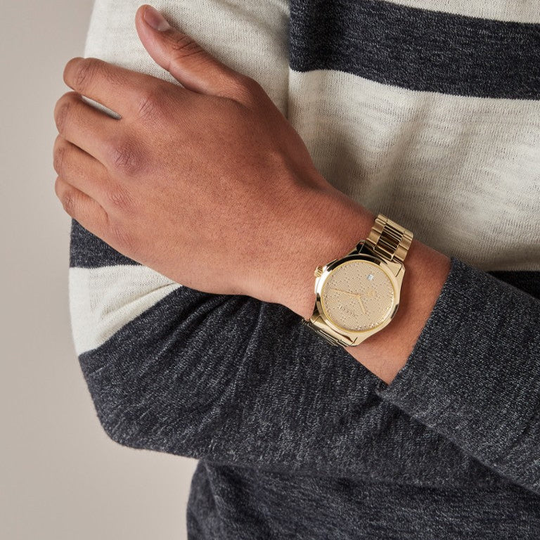 Gold Dial. Yellow Gold Stainless Steel Hands and Indexes.