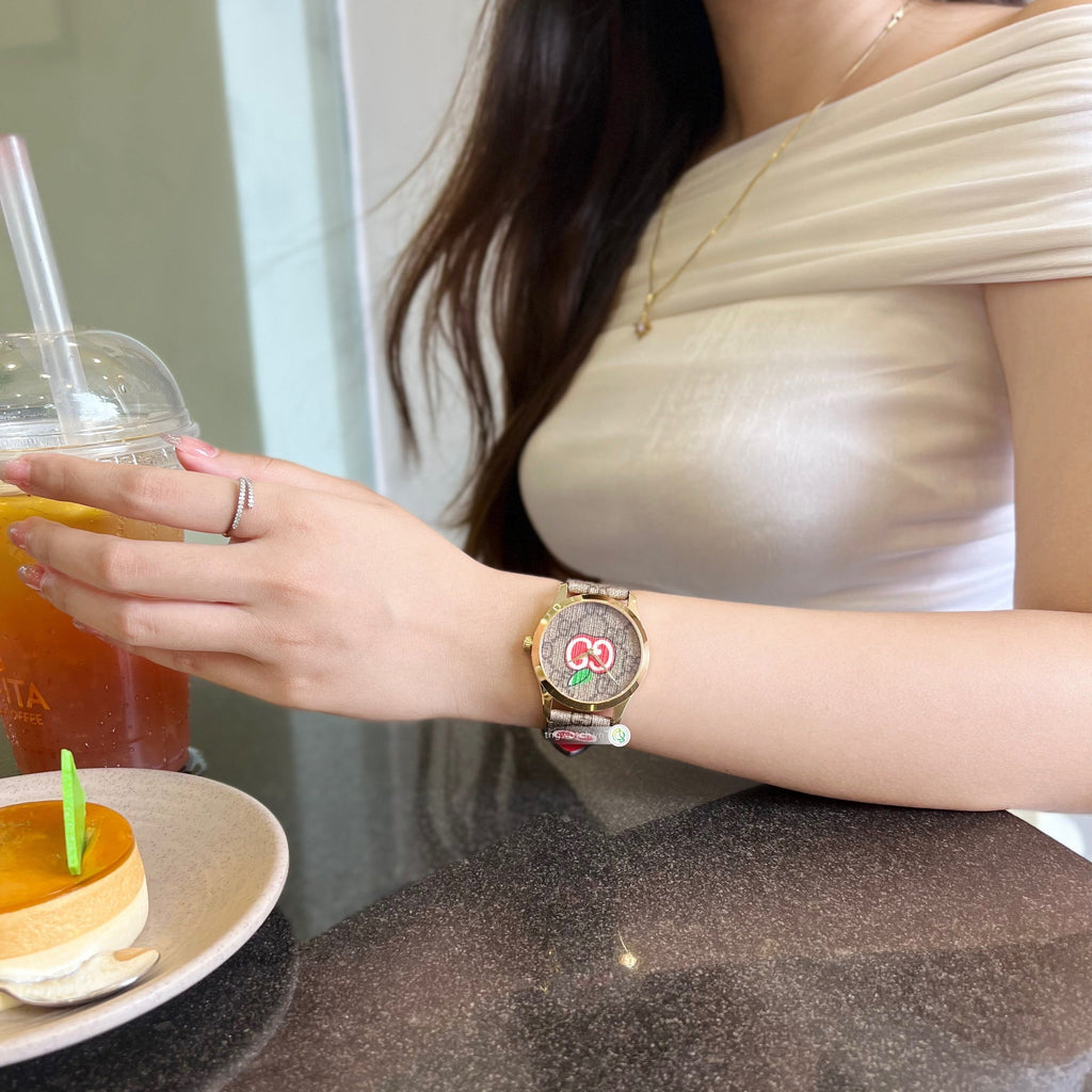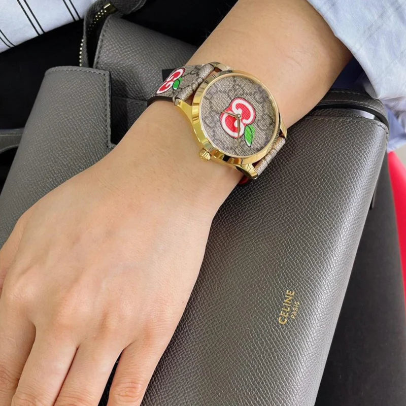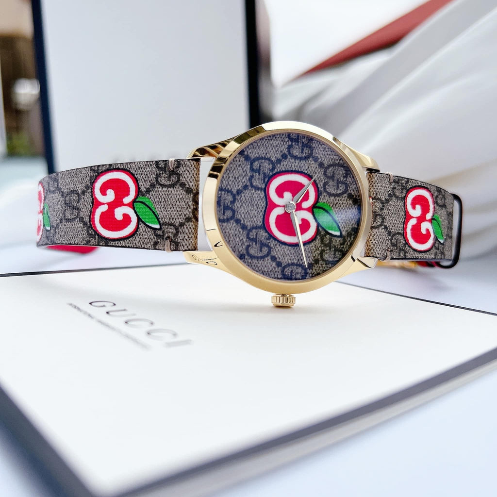 Gucci G Timeless Swiss Quartz Ladies Watch YA1264158 GUCCI G-TIMELESS Analog Brown Signature Pattern Leather Strap ◆ In 1921 Guccio Gucci started a leather company and opened a small bag store in Florence. His vision for the brand was derived from the sophisticated aesthetic of the British aristocrats seen in London and when he worked at Savoy Hotel.