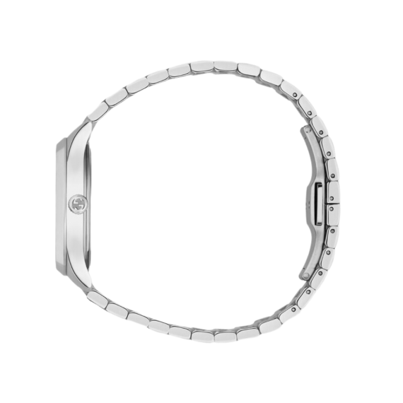 The G-Timeless collection continues to explore emblematic House codes in new ways each season. A turquoise stone dial defines this watch, framed by a silver-colored case and featuring the historical Gucci bee motif.