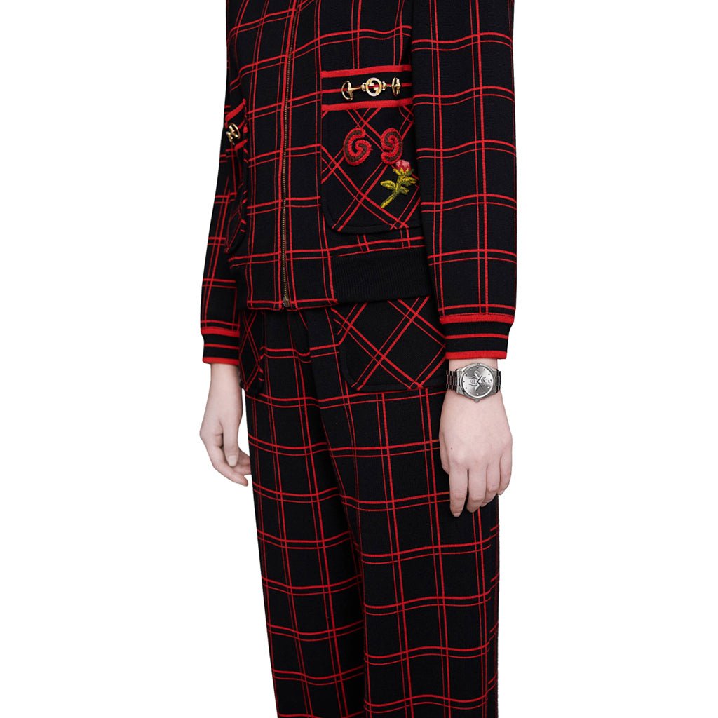 Designed with a steel case and bracelet completed with a silver sunbrushed dial for a tonal look. At the centre is the Gucci bee, surrounded by other codes of the House displayed as the watch's indexes, including the star and Interlocking G.