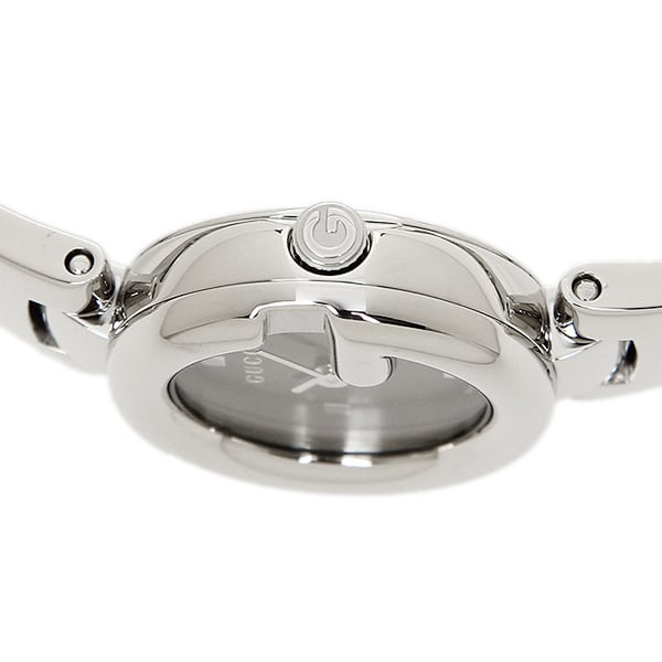 Case thickness: 9 mm. Oval case shape. Band width: 14.5 mm. Jewelry clasp. Water resistant at 50 meters / 165 feet. Functions: hour, minute. Dress watch style. Watch label: Swiss Made. Gucci Guccisima Black Dial Stainless Steel Ladies Watch YA134501.