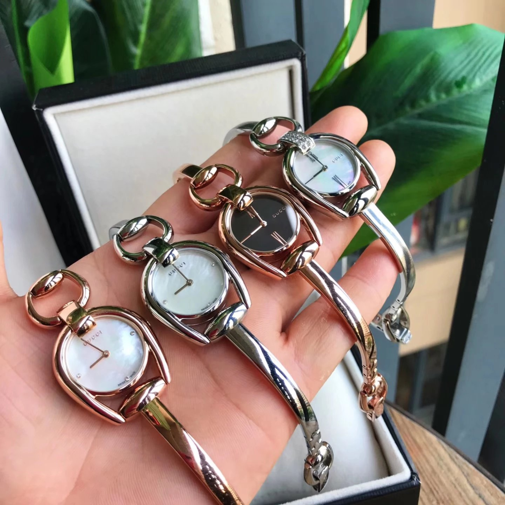 Gucci Horsebit Collection Black Dial Rose Gold Steel Strap Watch For Women - YA139507