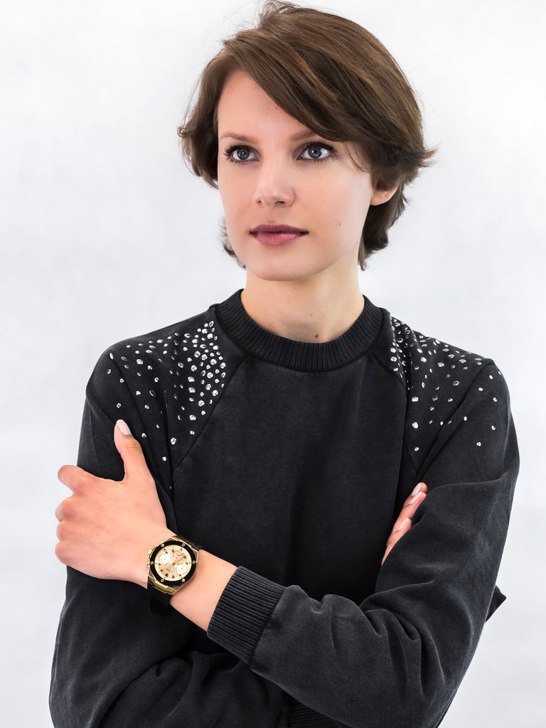 The black strap is made of high quality silicone, and therefore it's light and comfortable to use. The gold dial is protected against damage as the watch is equipped with a reliable mineral crystal that is resistant to impacts and scratches. A water resistance of 3ATM means the watch handles minor splashes of water. Guess GW0030L2 is an authentic watch that you can purchase in our authorised store. The model is packed in a branded box and comes with a manufacturer's warranty.