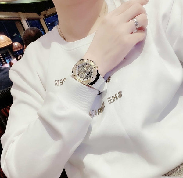 Sport meets Glam with this versatile chrono-look style featuring a nylon top ring that is made from 45% bio-based materials and a strap that is 49% bio-based.