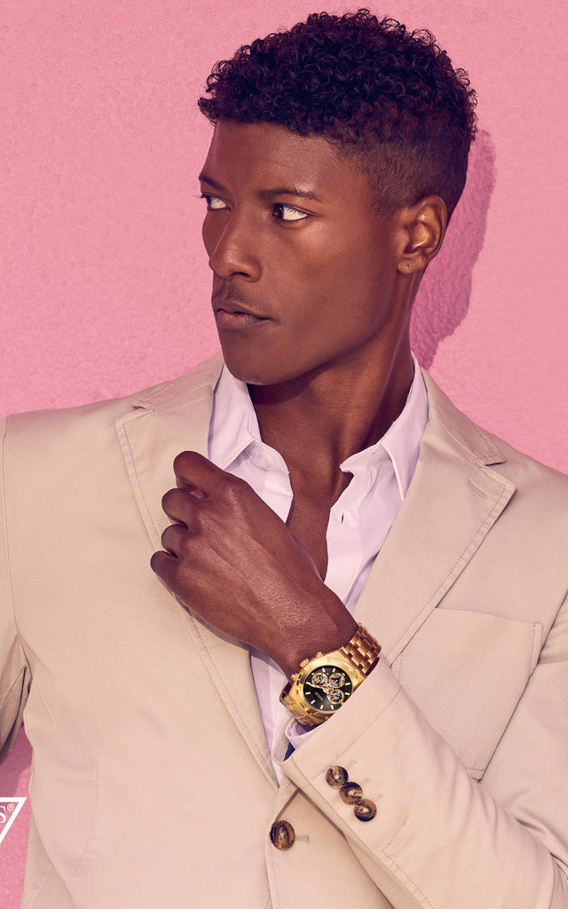 Guess Continental Black Dial Gold Steel Strap Watch for Men - GW0260G2