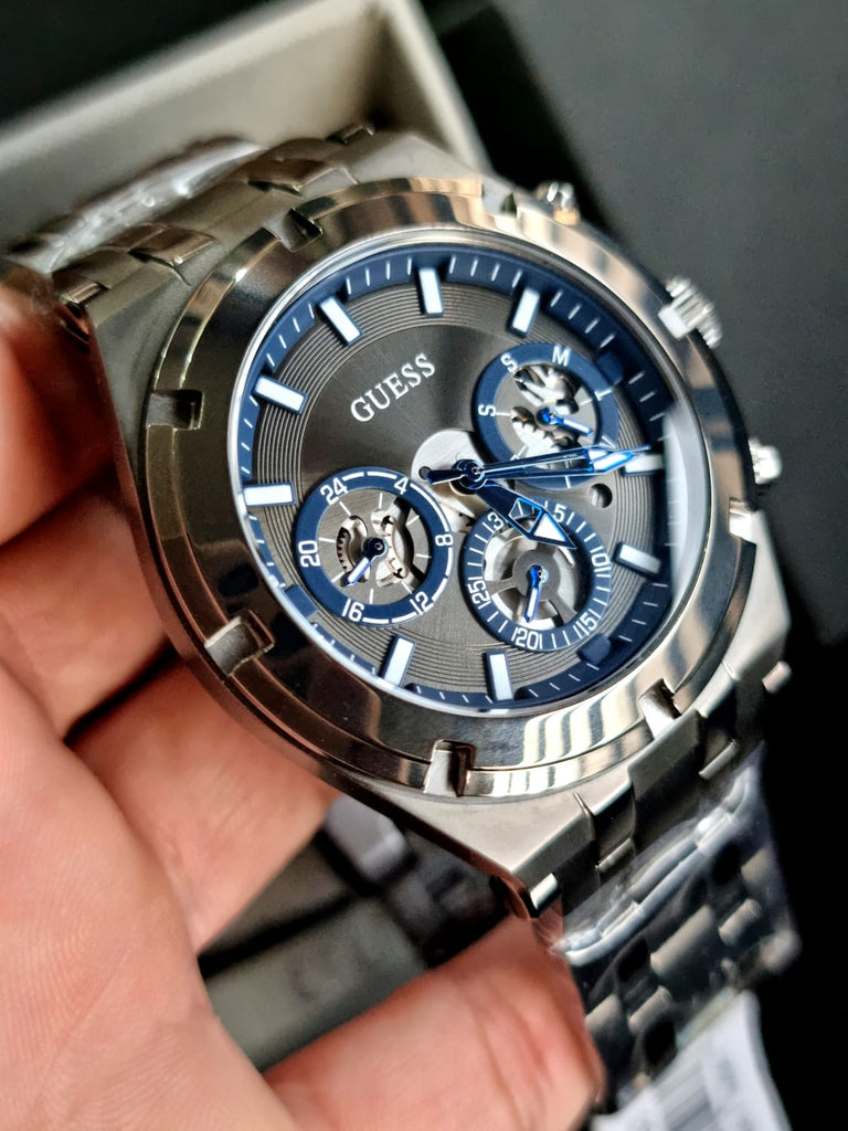 Style meets functionality with this multi-function chrono-look style with skeleton details to the sub-eyes that showcase the movement of the watch.