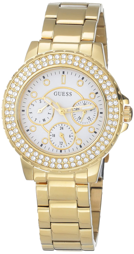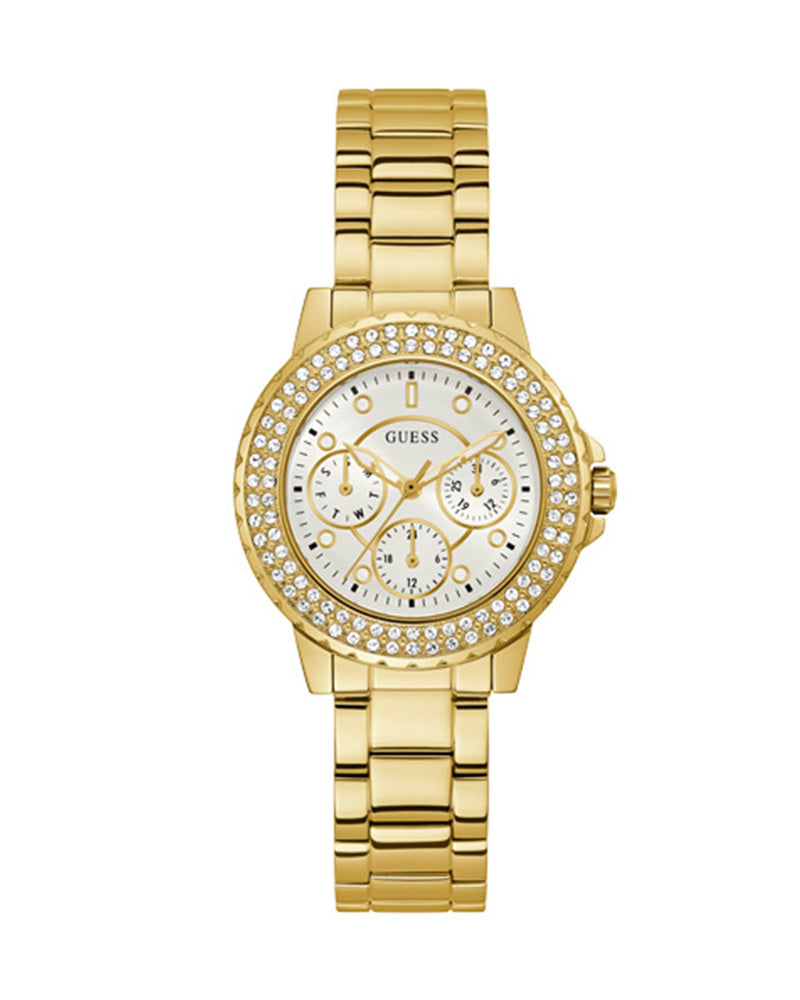 Guess Crown Jewel Diamonds White Dial Gold Steel Strap Watch for Women - GW0410L2