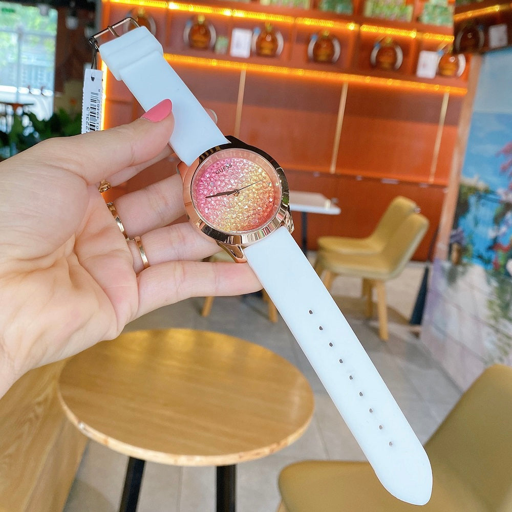 Guess Crush W1223L3 is a beautiful and interesting Ladies watch. is Plated Stainless Steel and the MultiColour dial gives the watch that unique look. In regards to the water resistance, the watch has got a resistance up to 30 metres. It means it can be worn in scenarios where it is likely to be sp lashed but not immersed in water. It can be worn while washing your hands and will be fine in rain.