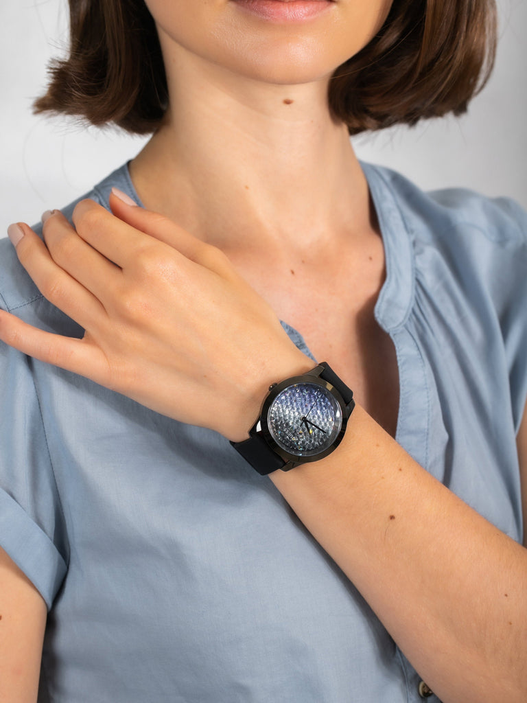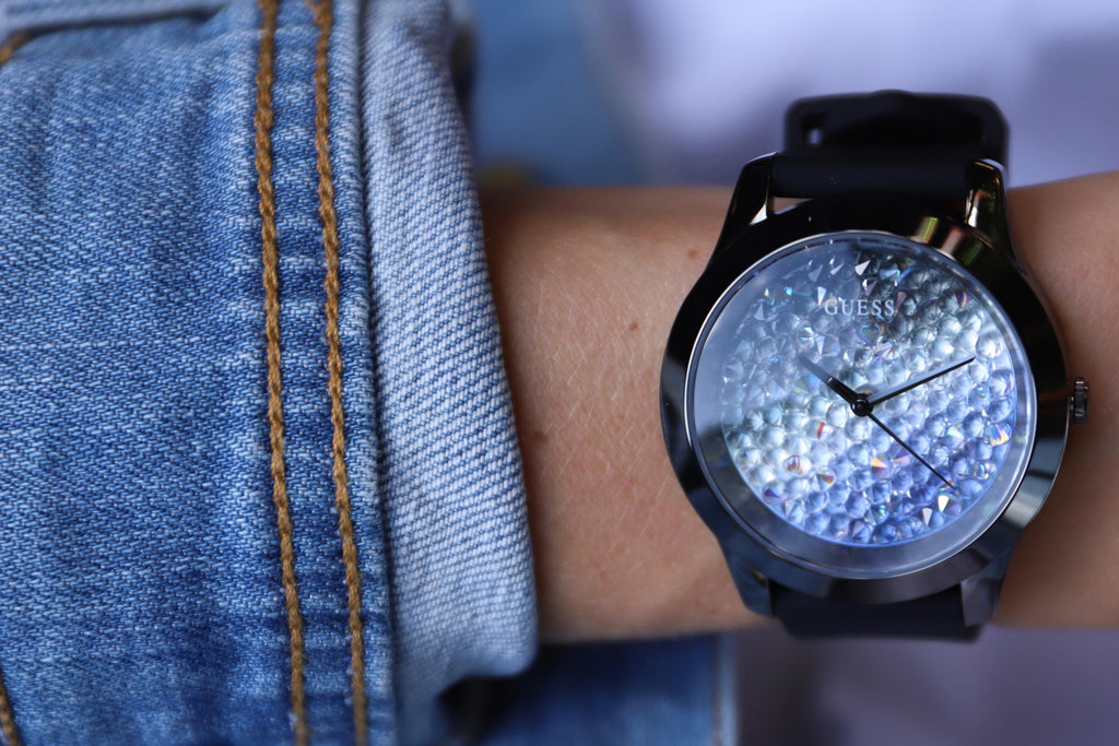 Guess Crush W1223L4 is a practical accessory for women. It will look great with both casual and elegant outfits. The watch has a reliable quartz movement. The case is made of stainless steel of high quality covered with a purple coating.The strap is made of high-quality silicone in black.
