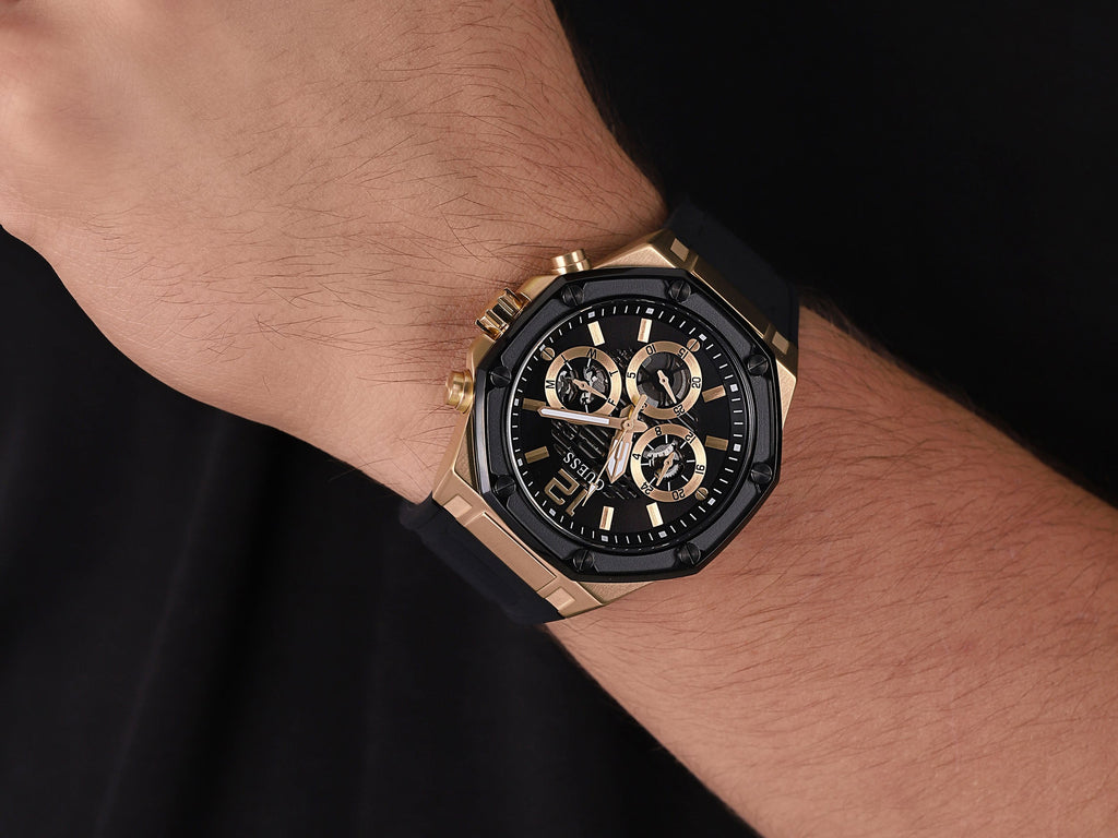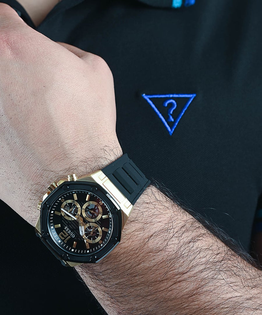 Guess Momentum GW0263G1 is a functional and very impressive Gents watch from Sport collection. Case is made out of Stainless Steel, which stands for a high quality of the item and the Black dial gives the watch that unique look. 50 metres water resistancy will protect the watch and allows it to be submerged in water for periods, so can be used for swimming and fishing. It is not recommended for high impact water sports. We ship it with an original box and a guarantee from the manufacturer.