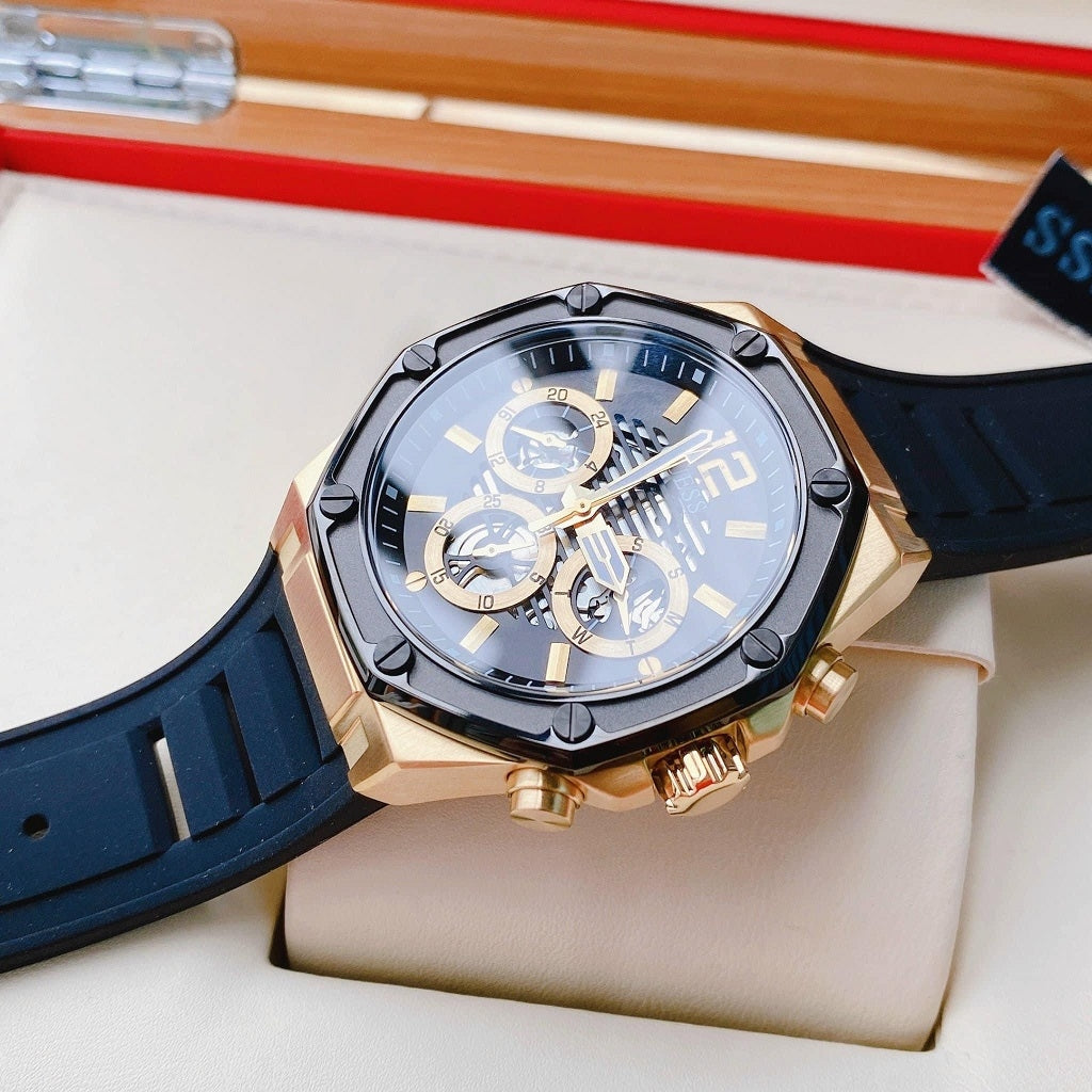 Guess Momentum Black Dial Black Rubber Strap Watch for Men - GW0263G1