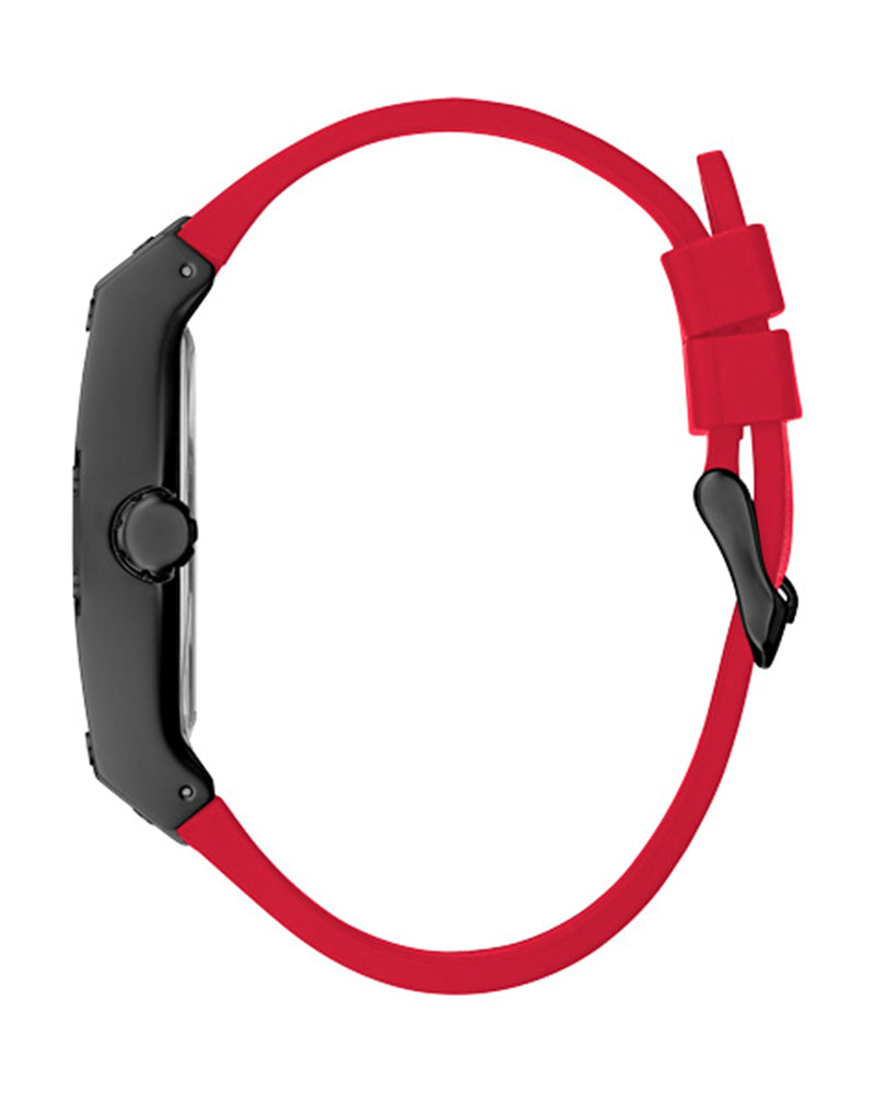 Guess Mens Black Stainless Steel Case Black Dial Black & Red Geniune Leather-Silicone Band Watch