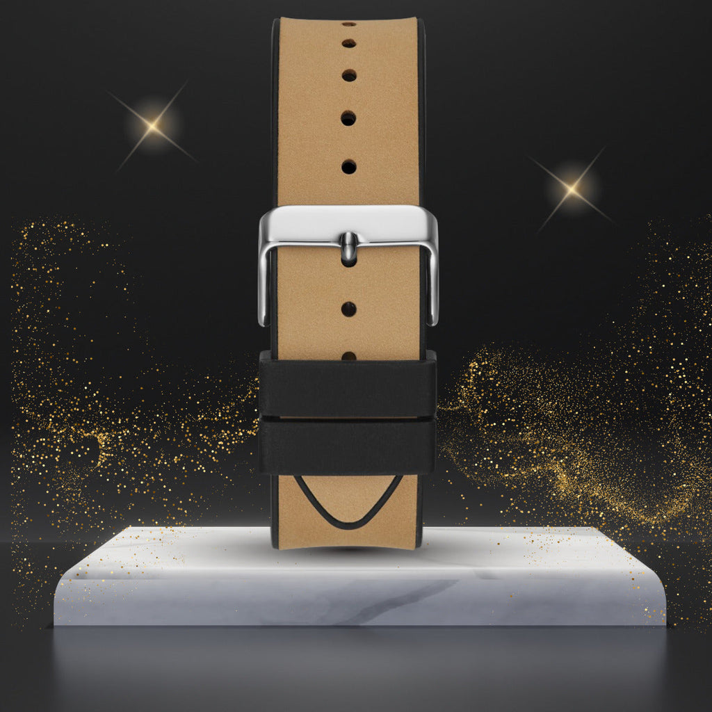 Skeleton dial details keep this phoenix on the rise. Featuring a silver-tone barrel shaped case with a black multi-function dial, this also features a FLEX strap. A soft black silicone paired with smooth beige leather and match beige stitching to create a flexible fit for every wrist.