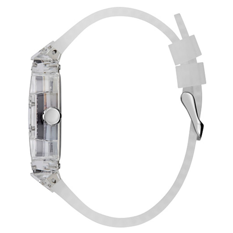 This timepiece from guess watches is a pristine watch for today`s watch lover. The body of the watch has a Polycarbonate case material. The heart of the watch is a high tech Quartz (battery) movement. The timepiece is enclosed in a profound 44-mm case.