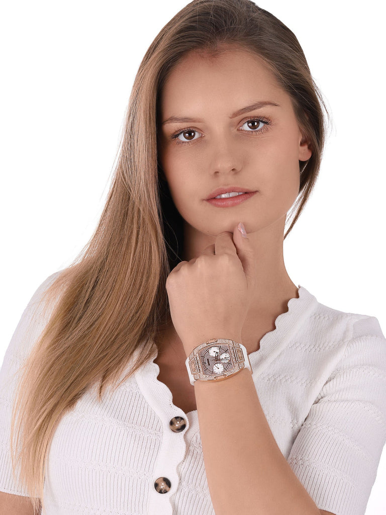 Expertly crafted with a rose gold dial and sparkling diamonds, the Guess Raven watch exudes elegance and style. The white silicone strap adds a touch of modernity, making this watch the perfect accessory for any occasion. Timeless beauty meets contemporary design.