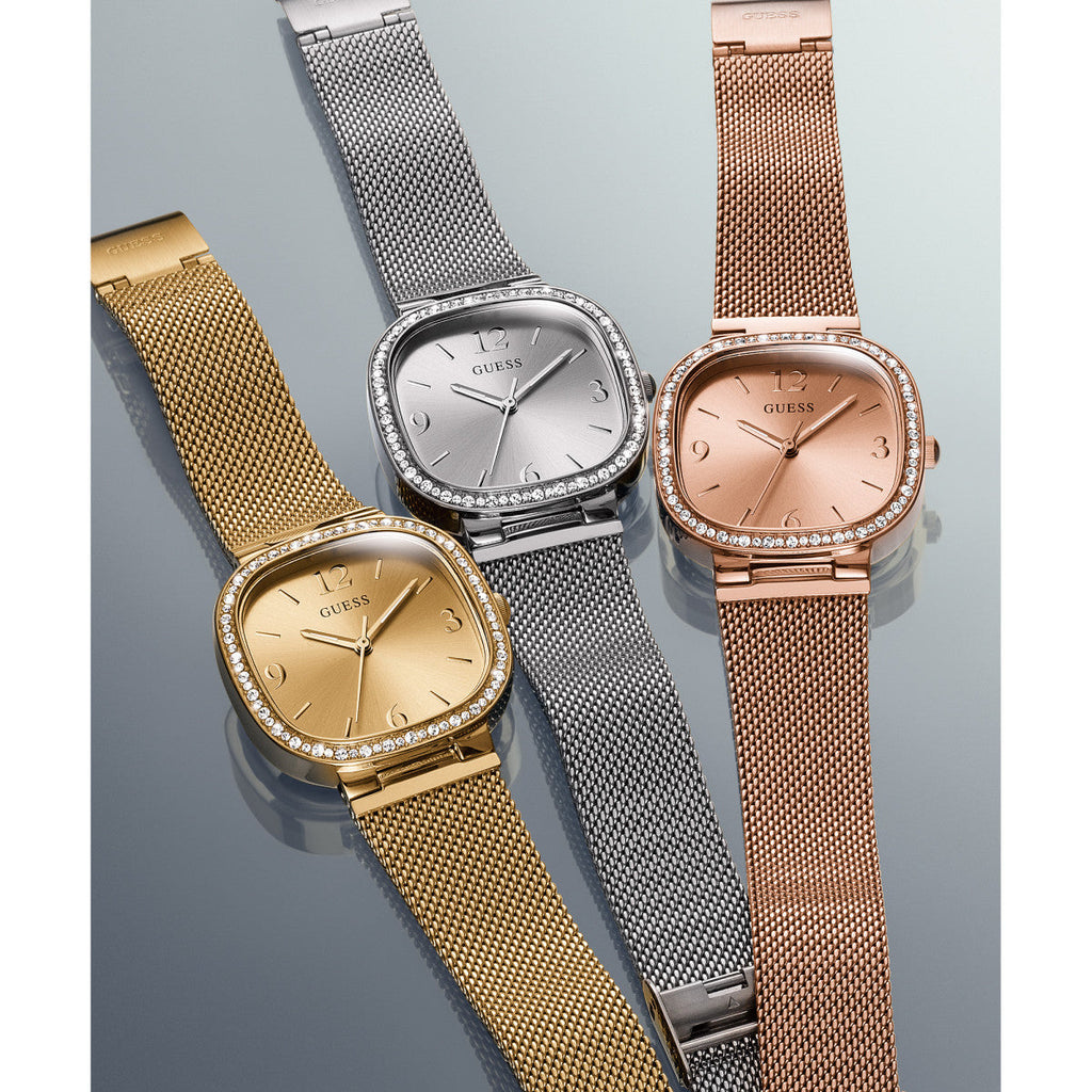 Guess Tapestry GW0354L1 is an incredible eye-catching Ladies watch. Case material is Stainless Steel while the dial colour is Silver. This model has 30 metres water resistance - it can be worn in scenarios where it is likely to be splashed but not immersed in water. It can be worn while washing your hands and will be fine in rain. We ship it with an original box and a guarantee from the manufacturer.