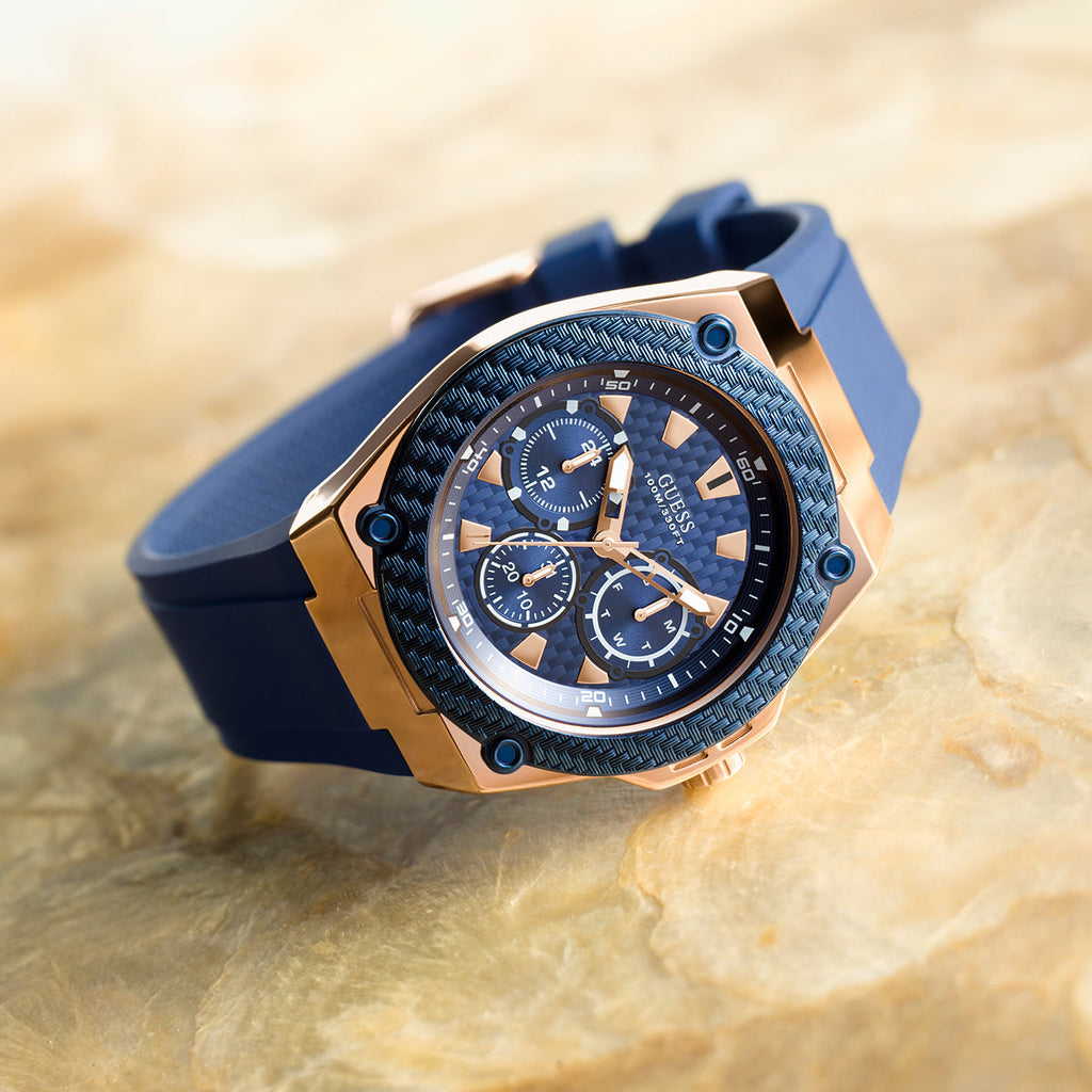 The strap is made of high-quality silicone in navy blue . The strap perfectly matches other parts of the watch. The navy blue dial is protected against shocks and scratches by a mineral crystal. The 50m water-resistant watch is protected from damage caused by water. Guess W1094L2 is an authentic watch that you can purchase in our authorised store. The model is packed in a branded box and comes with a manufacturer's warranty.