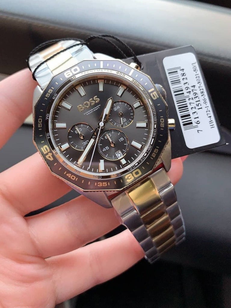 Hugo Boss Energy Chronograph Black Dial Silver Steel Strap Watch For Men - 1513971