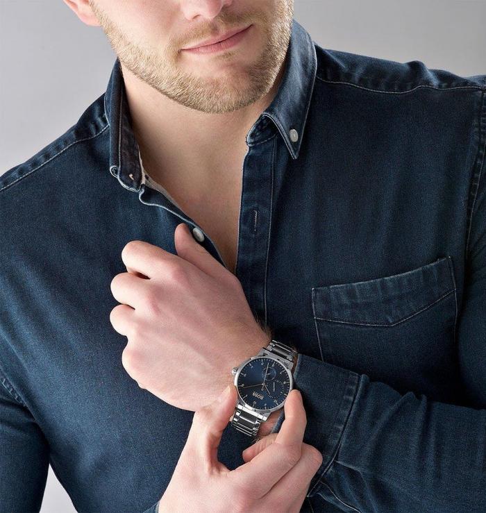 Hugo Boss Oxygen Chronograph Blue Dial Silver Steel Strap Watch for Men - 1513597