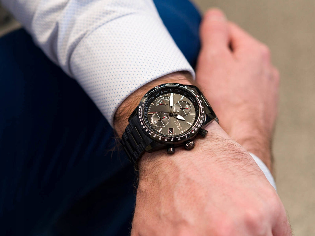 Discover the sophisticated style and precision of the Hugo Boss Pilot Edition Black Dial Black Steel Strap Watch for Men. With a modern black dial and sleek black steel strap, this watch exudes confidence and class. Its precision engineering ensures accurate timekeeping, making it the perfect accessory for any occasion.