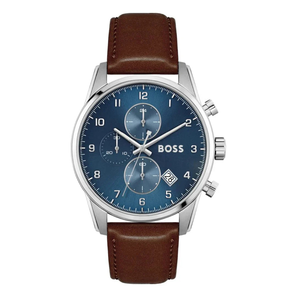 Hugo Boss Skymaster Blue Dial Brown Leather Strap Watch for Men - 1513940