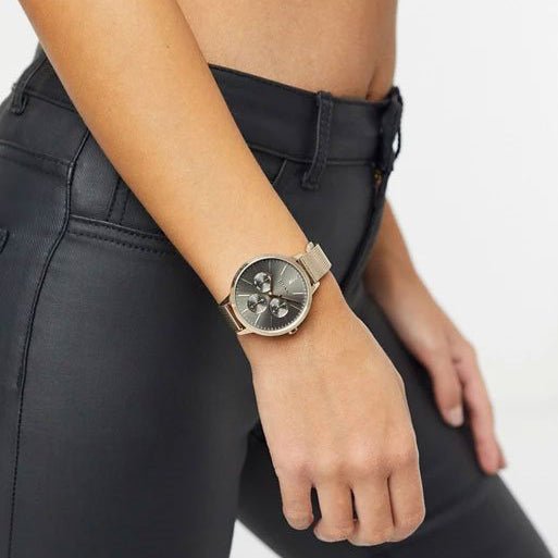The watch is complete with a tactile mesh bracelet strap and fastens with a deployment buckle clasp.