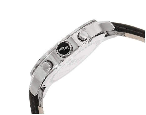 Hugo Boss Jet Black Dial Black Leather Strap Watch for Men - 1513279