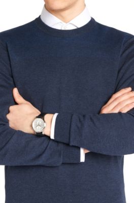 Hugo Boss Jet Silver Dial Black Leather Strap Watch for Men - 1513282