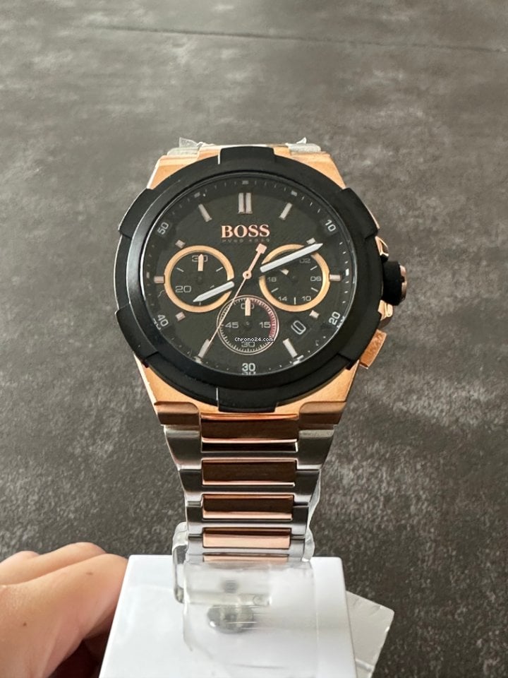 Hugo Boss Chronograph Black Dial Two-Tone Men's Watch 1513358 is an amazing and special Gents watch from Supernova collection. Case is made out of Rose Gold Ion-plated Steel while the dial colour is Black. In regards to the water resistance, the watch has got a resistance up to 50 metres. It means it can be submerged in water for periods, so can be used for swimming and fishing. It is not recommended for high impact water sports.