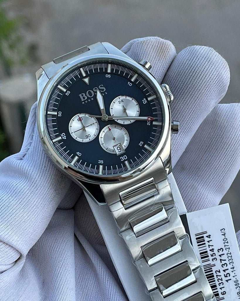 Hugo Boss Pioneer Blue Dial Silver Steel Strap Watch for Men - 1513713
