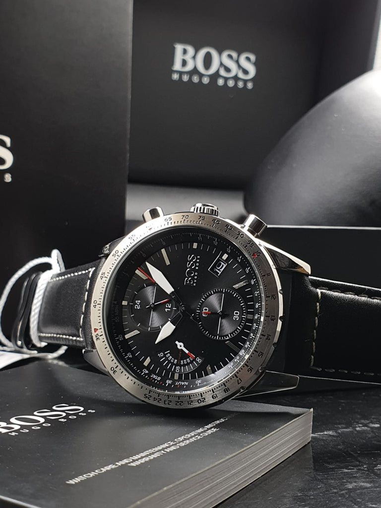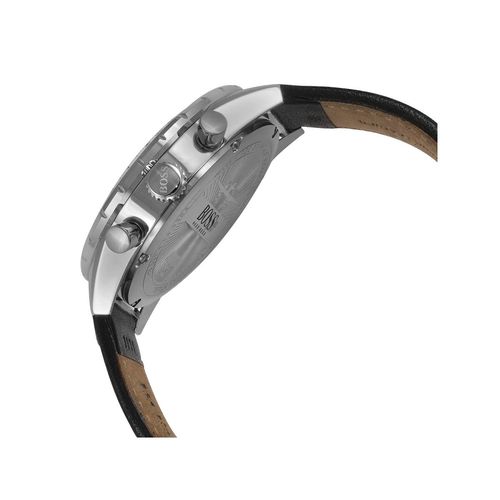 Hugo Boss Aero Chronograph Black Dial Black Leather Strap Watch for Men - 1513770