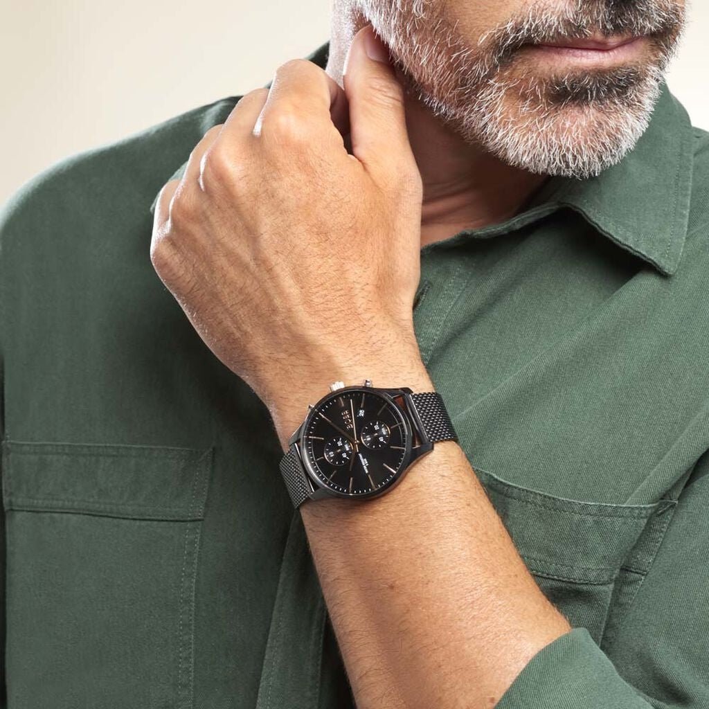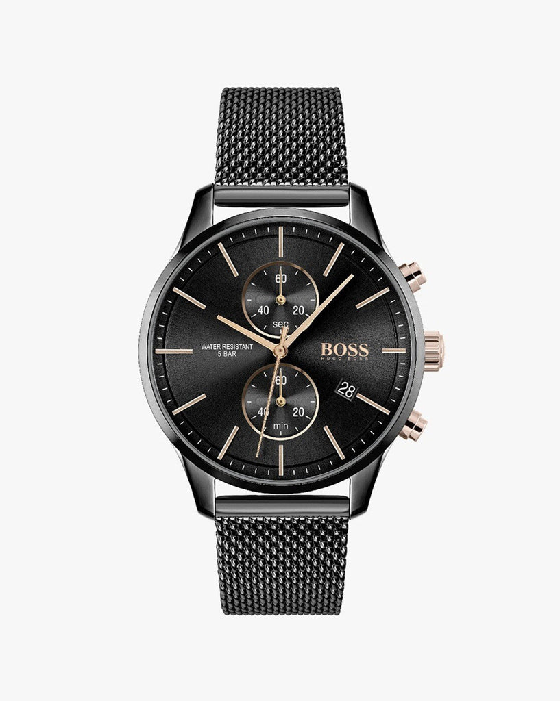 Hugo Boss Associate Black Dial Black Mesh Bracelet Watch for Men - 1513811