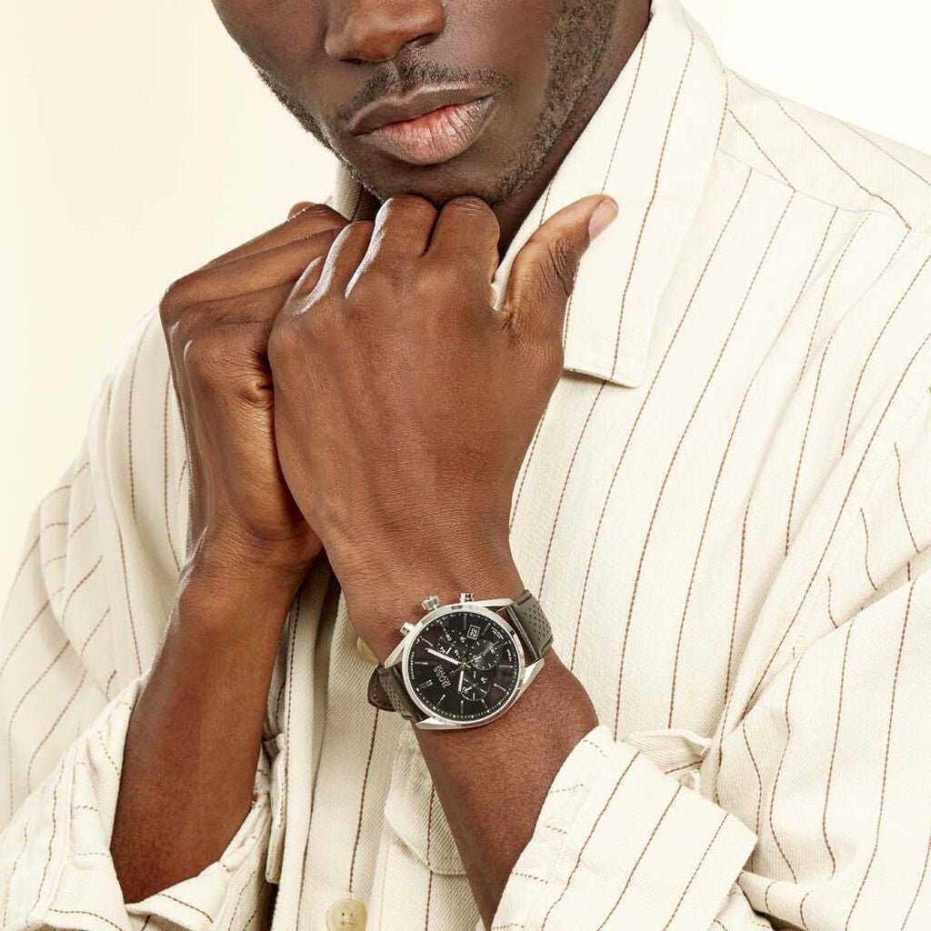 Hugo Boss Champion Black Dial Black Leather Strap Watch for Men - 1513816