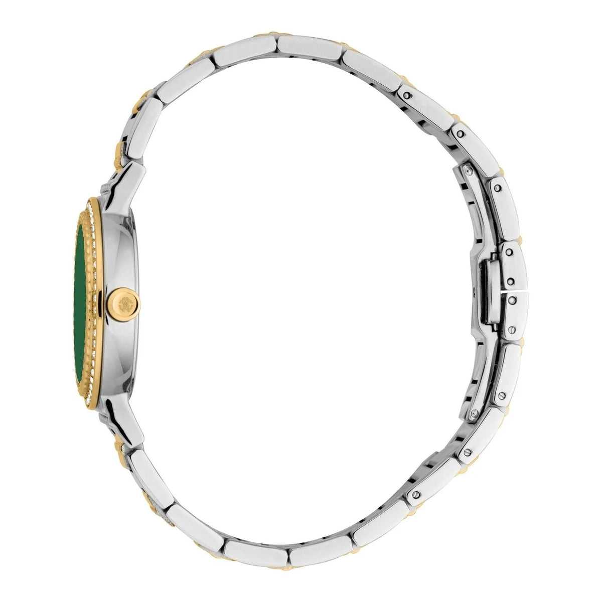 Elevate your everyday elegance with the Just Cavalli Donna Glam watch, where sophisticated design meets timeless appeal. This stunning timepiece features a captivating green dial that catches the light beautifully, paired with a luxurious two-tone steel strap that seamlessly transitions from casual to formal occasions. The refined craftsmanship and modern aesthetic make it the perfect accessory for women who appreciate quality and style. Whether you're heading to the office or an evening out, this watch delivers both precision and glamour on your wrist.