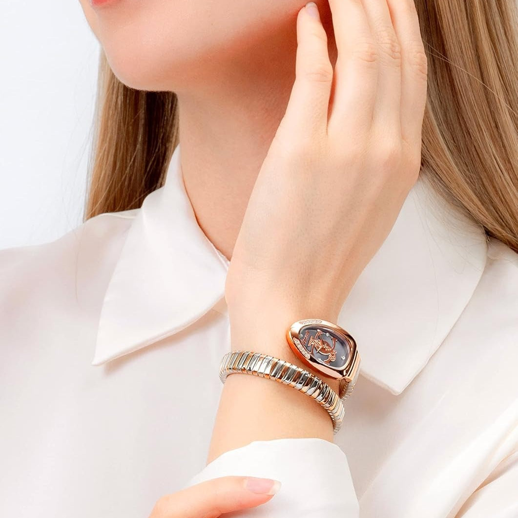 • The Just Cavalli Serpente logo watch is an elegant and bold watch that stands out on the wrist. With a snake design on the dial, this watch is perfect for anyone looking to add a touch of class to their wardrobe. Thanks to the waterproof construction, you don't have to worry about damage when you are on the go, whether rain or splash.