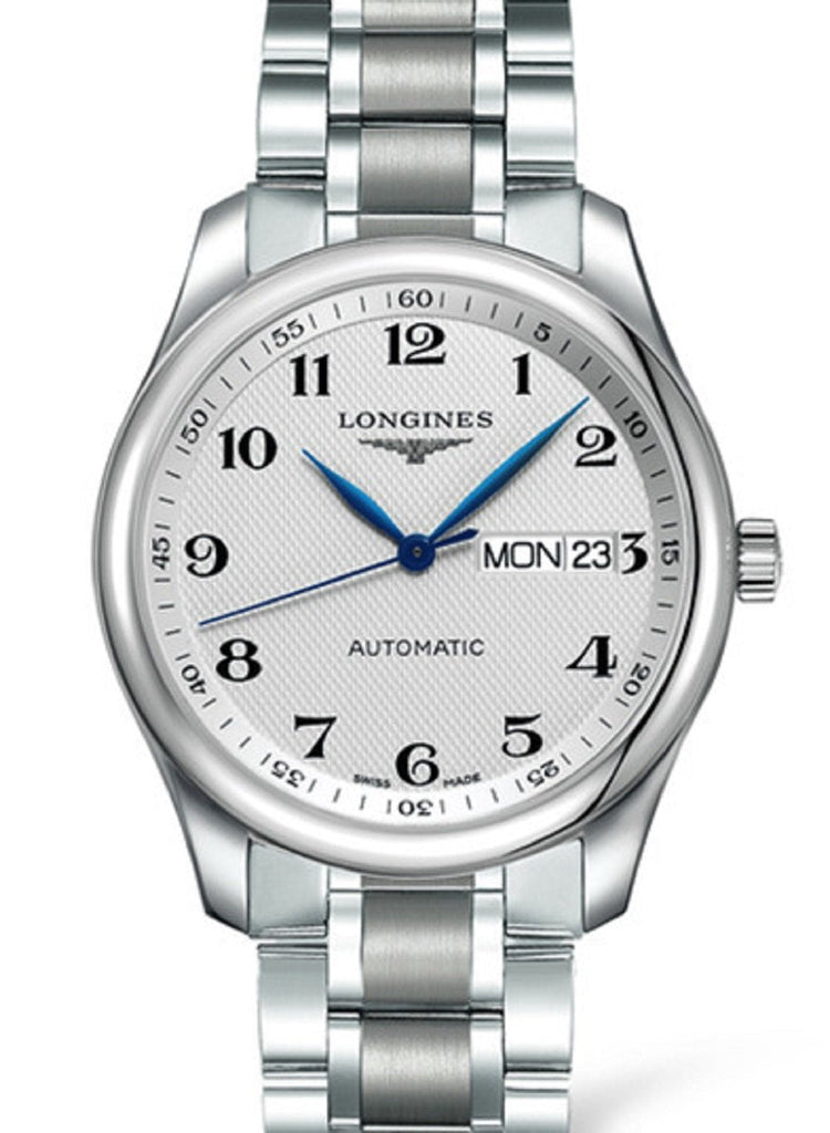 Fitted with Longines caliber L636, the Master Collection Day-Date displays both day and date through a window at 3 o'clock. It is available in a number of variations; ref. L2.755.4.78.6 has a stainless steel case and bracelet.