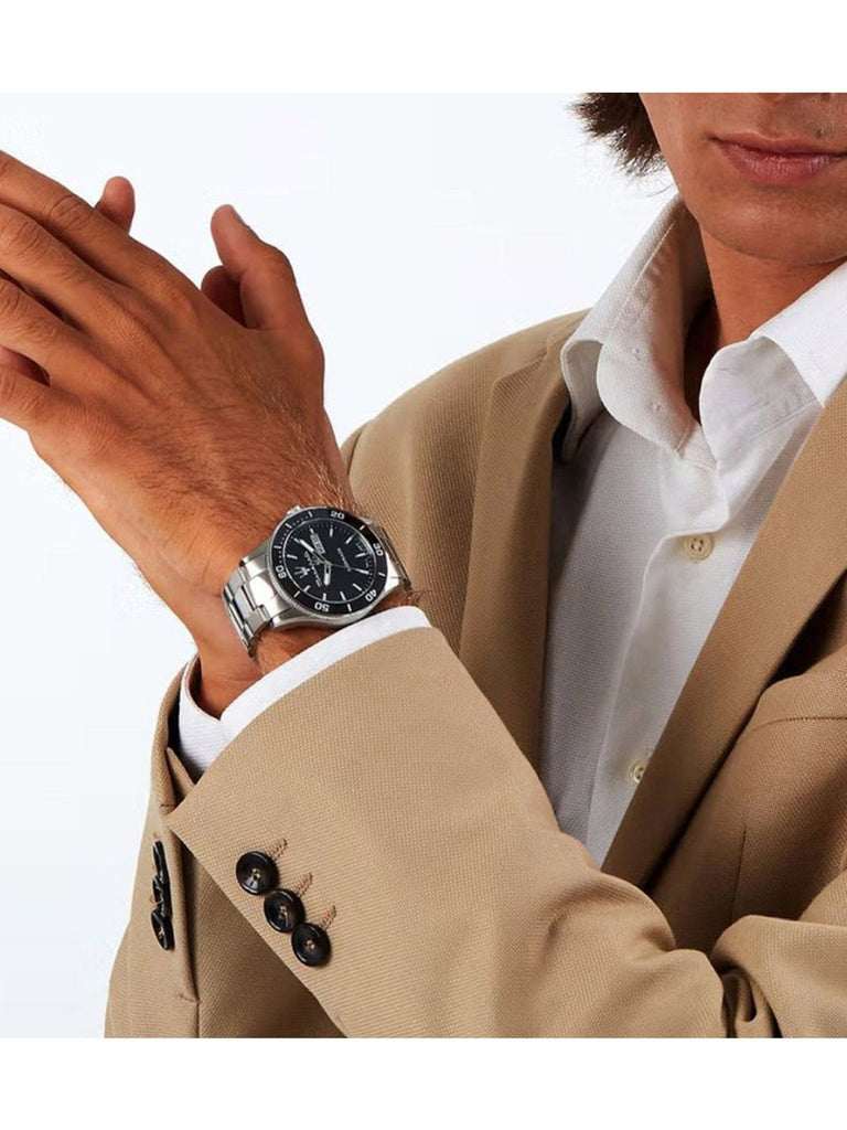 Maserati Competizione Automatic Black Dial Silver Steel Strap Watch For Men - R8823100002