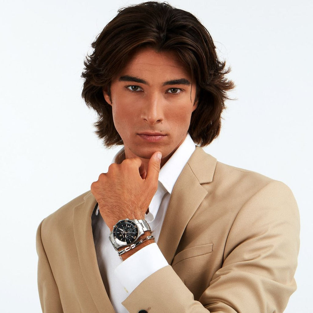 Maserati R8873600003 is a classic men's watch, which with its visual effect will surprise not one lover of elegant style. The round, silver-colored envelope is made of stainless steel and uniquely matches the stately bracelet. The black color of the envelope, which is surrounded by a ceramic and rotating bezel, adds timeless style to the product.
